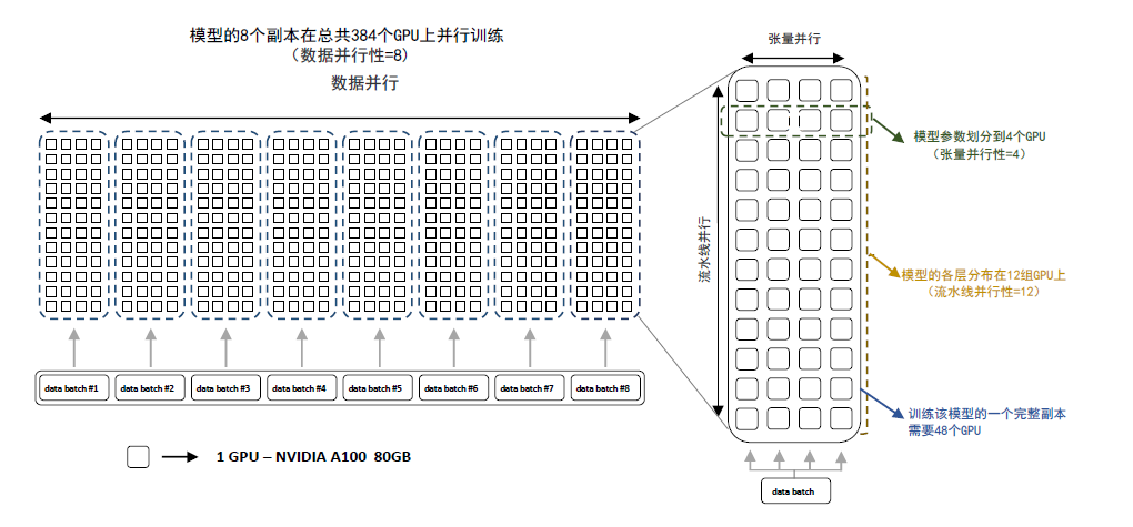 图14 BLOOM 模型训练时采用的并行计算结构