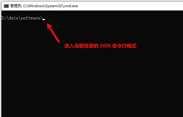 点击该菜单,就直接进入:D:\data\software这个目录的 DOS 路径: