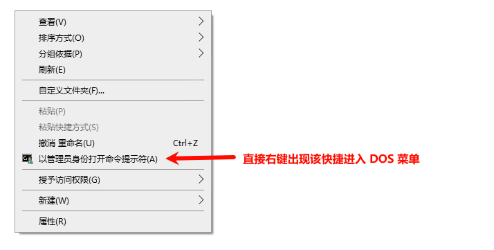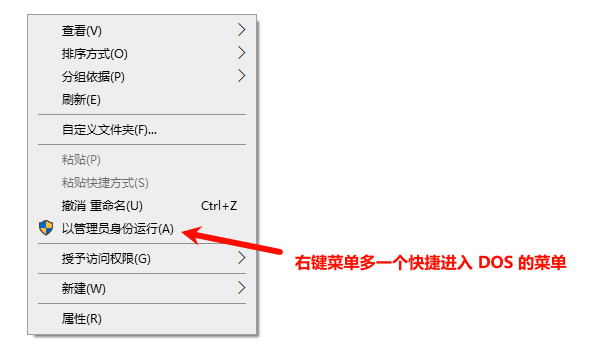有了以上方式,进入 DOS 就比较方便,可以随意在一个软件的目录点击右键,然后选择该菜单快捷进入 DOS 命令行模式。下面提供两种方法实现: