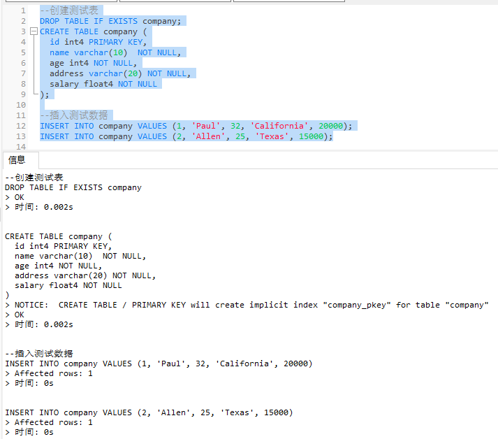 --创建测试表