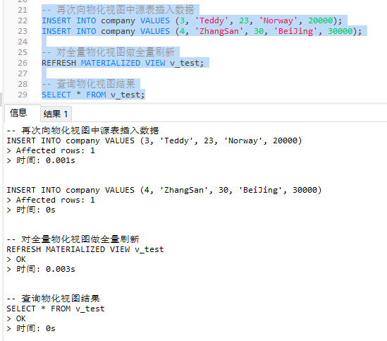 REFRESH MATERIALIZED VIEW v_test;