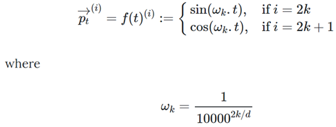 Positional Encoding层负责生成位置向量。位置向量与模型解耦,取值只跟词向量维度相关。位置向量表示式如下: