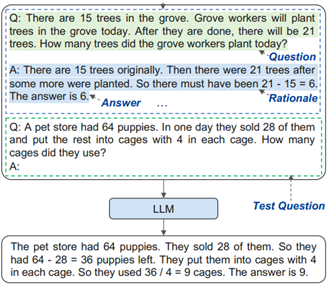 - 链式思考:即思维链CoT,即教模型一步一步推理出结果。