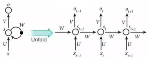 RNN网络参数U、V、W对于每个时间步而言都是共享的,且每步计算依赖前一步输出,因此不能进行并行计算。