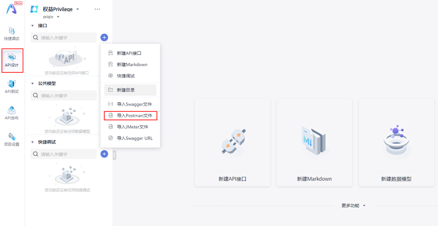 我们可以选择将此压缩文件导入到CodeArts API的API设计或快捷调试。