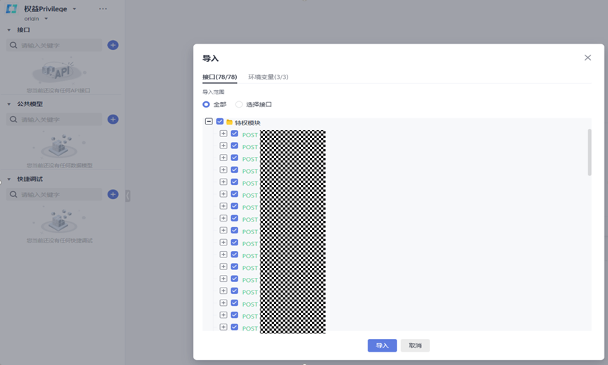 选择要导入的ZIP文件压缩包,并可以选择接口和环境变量。