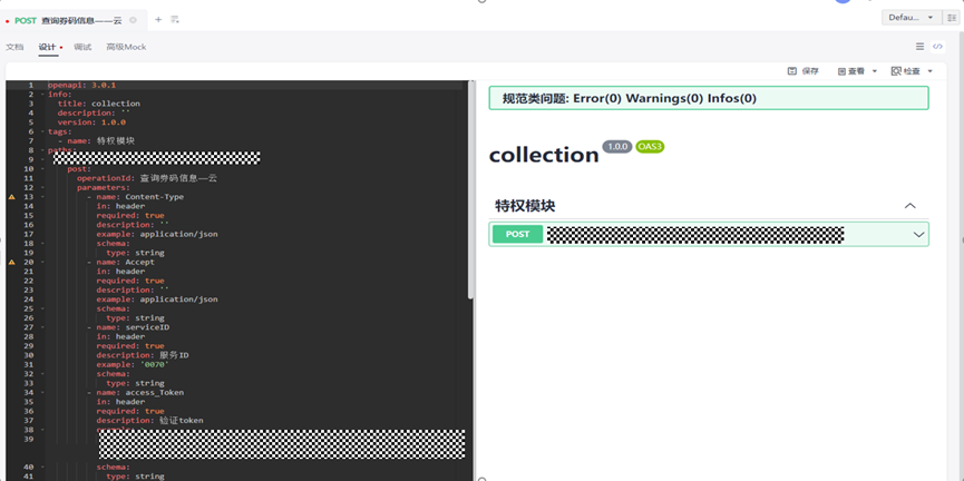 与此同时,如果是像我一样有经验的开发者,也可以使用Swagger原生编辑器去设计API,并且CodeArts API提供了设计规范检查功能,可以在Swagger编辑器中查看是否编写错误。