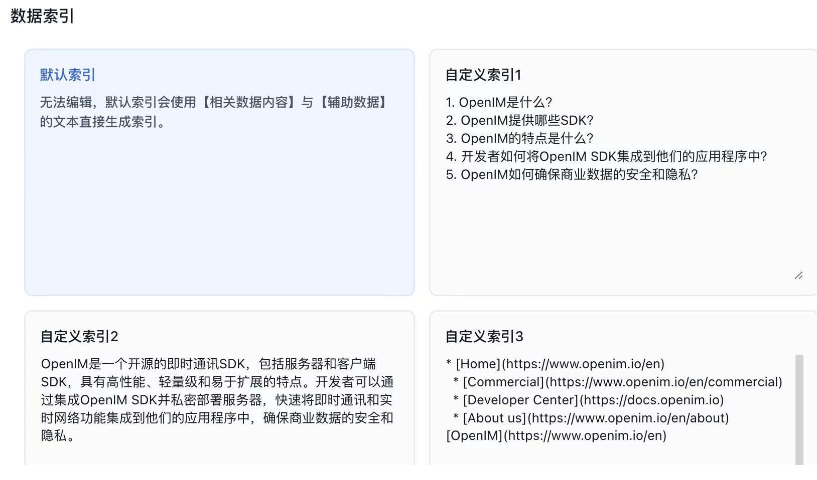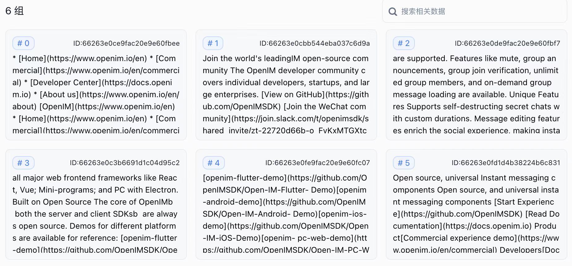 以网页https://www.openim.io/en的文本内容为输入,按照上面3种策略进行文本分割。