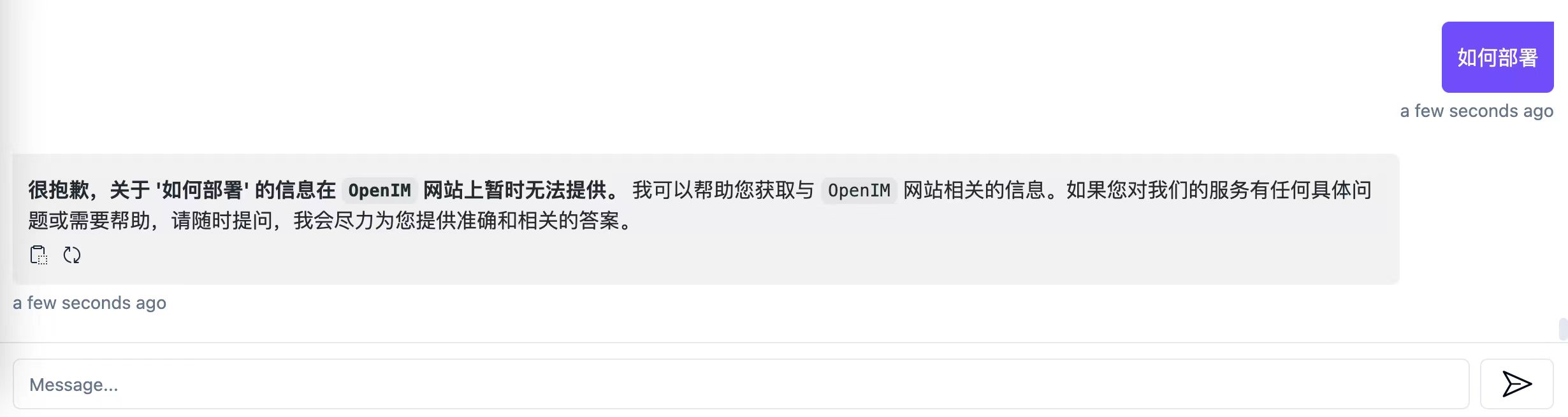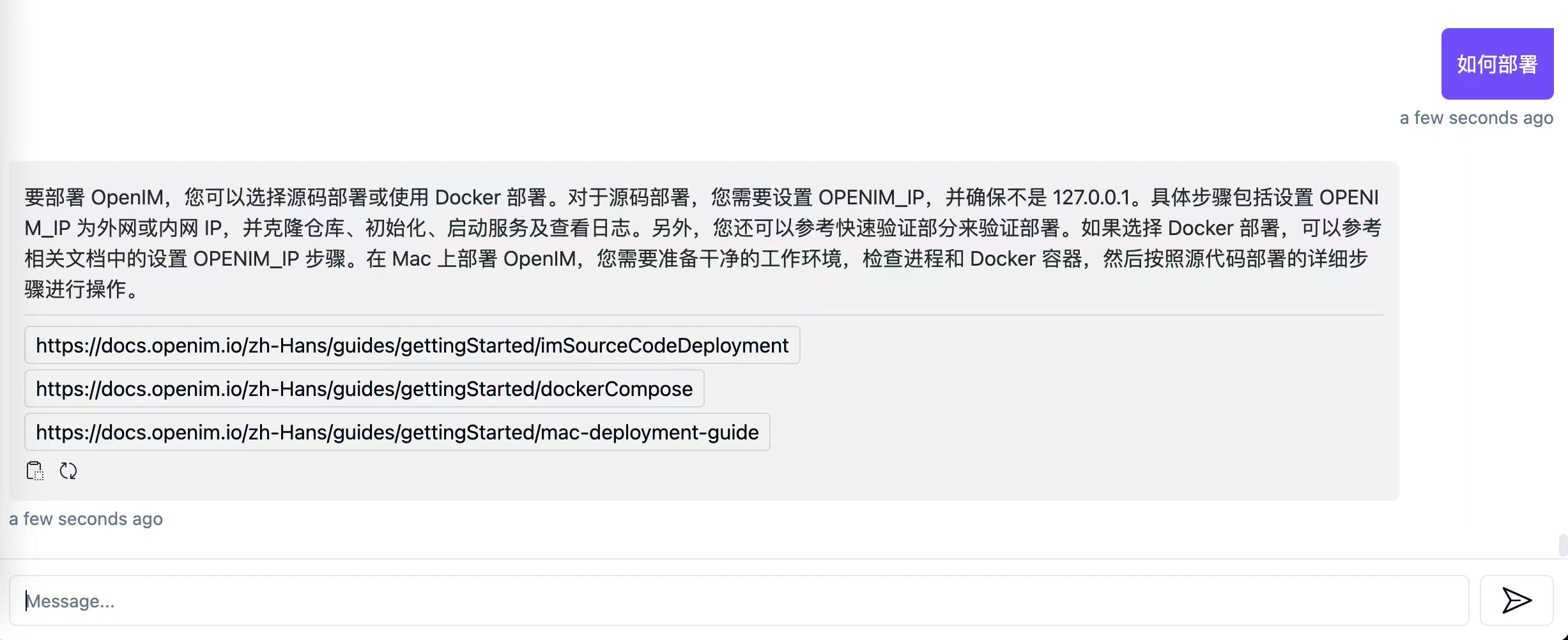 OpenIM文档网站使用rag-gpt搭建了网站智能客服,可以快速验证查询重写策略的效果。