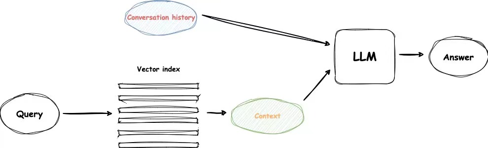 关于构建一个能够针对单一查询多次工作的优秀RAG系统的下一个重大事项是聊天逻辑,这一点与前LLM时代经典聊天机器人中的对话上下文相同。