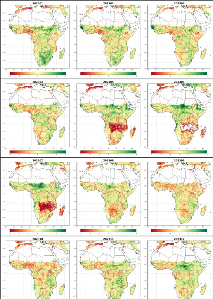 图1 非洲地区FYDI干旱指数2023年1-12月