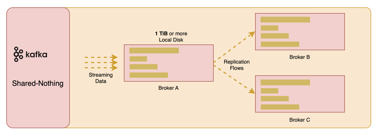 Apache Kafka,作为一款广泛使用的流处理平台,其背后的存储架构一直是以本地磁盘为中心的 Shared Nothing 架构。然而,随着云计算技术的不断进步,这种传统架构正面临着前所未有的挑战。Shared Nothing 架构指的是系统中没有共享资源,每个节点都拥有自己的存储和计算资源,独立地执行任务。尽管这种架构在某些场景下提供了良好的扩展性和容错性,但它在云环境中的局限性逐渐显现: