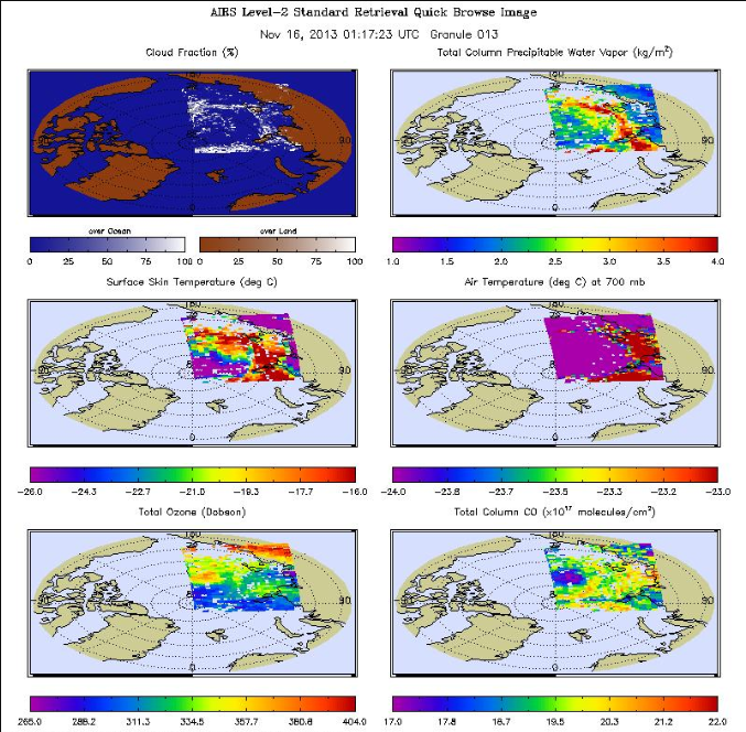 AIRS 使用最先进的红外技术绘制空气和地表温度、水汽和云层属性的三维地图。AIRS 有 2378 个光谱通道,其光谱分辨率比以前的红外探测仪高 100 多倍,可提供有关大气温度和湿度垂直剖面的更准确信息。AIRS 还可以测量痕量温室气体,如臭氧、一氧化碳、二氧化碳和甲烷。