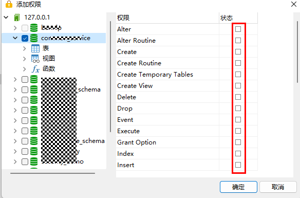选择需要授予的库,选择勾选所有的权限,即可。 然后保存返回