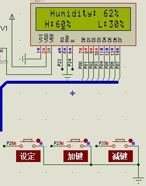 由图可知,LCD显示当前测量的土壤湿度(Humidity)为53%,系统预设的湿度上限(H:High的缩写)为60%,下限(L:Low的缩写)为30%,土壤湿度正常,在上下限范围之内。资源获取,蒋宇智QQ(2327603104)。