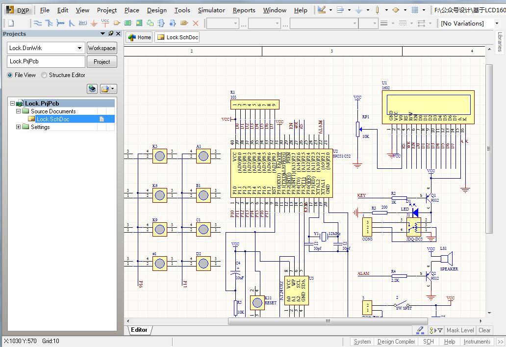 多功能电子密码锁系统由AT89C52单片机最小系统、4×4矩阵键盘、LCD1602显示、AT24C02存储模块以及报警系统等组成,具有设置、修改六位用户密码、超次报警、超次锁定、密码错误报警等功能。