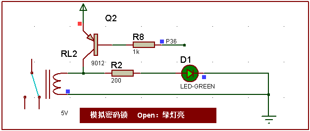 (2)输入初始密码6个0后,点击“确认”键,LCD显示Open状态,密码锁打开,继电器动作,绿色LED灯点亮,开锁成功。