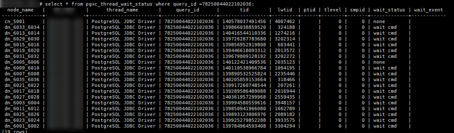重新执行此异常断开语句:等待状态为wait cmd,常见于由一个集群通过CDM往另一个集群抽数