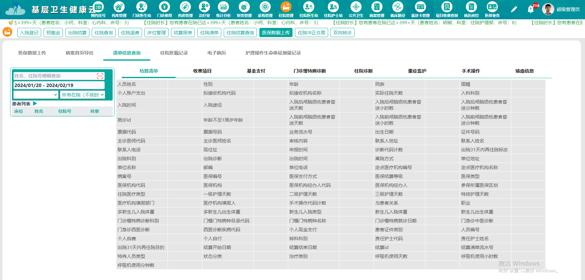 住院管理系统主要实现住院病人在院进行各种诊治行为过程中发生费用的记账登记管理,以及病人的中途结账、出院结账、病人费用查询、一日费用清单以及各种住院费用报表查询。