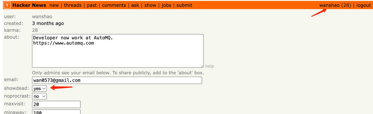 ꔷ 新号的限制:注册后大概 2 周的时间,你在 HN 上的名字展示时都是绿色的,方便别人识别你是一个新号。新号评论和发帖大概率都是 dead。