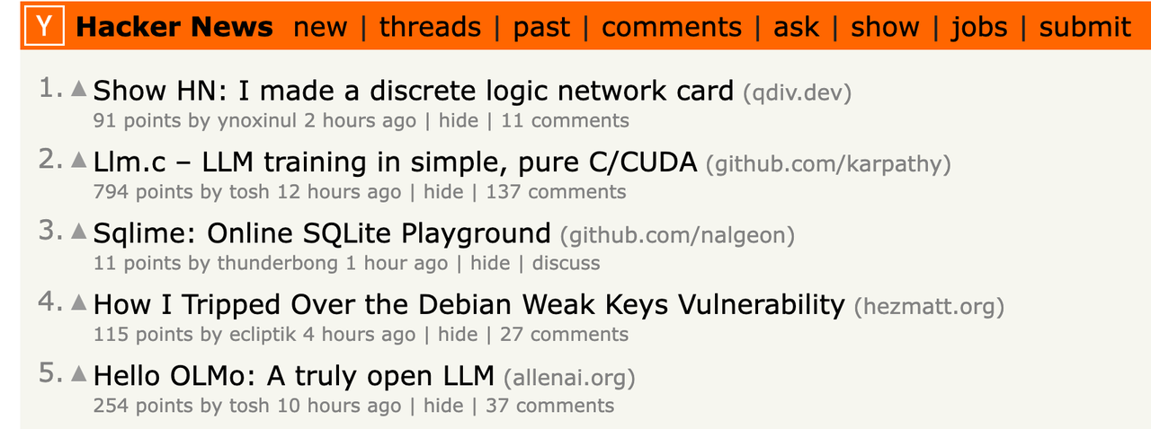 [4] Hacker News Ranking Info: https://hnrankings.info/