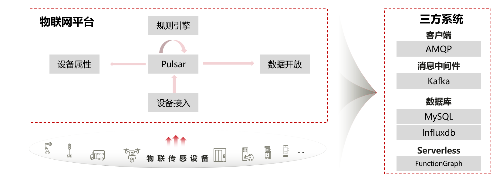 以华为云IoT & Apache Pulsar/BookKeeper的合作为例。物联网平台的核心模块消息中间件。整个业务流程为南向数据流从设备接入到Pulsar,经过规则引擎进行过滤、转换、增强等操作,再回到Pulsar,最后从设备接入进来,数据到Pulsar,经过规则引擎处理,再回到pulsar,最后由数据开放服务对外开放对接到其他第三方应用。规避了传统的消息组件扩展性受限、topic量级受限、消费模型单一等问题。同时华为云IoT也在Apache Pulsar以及下游项目,在安全、稳定特性上做了很多贡献,包括一些tls的校验、一些泄露的修复等等,为Pulsar的安全、可靠、功能做出了贡献。