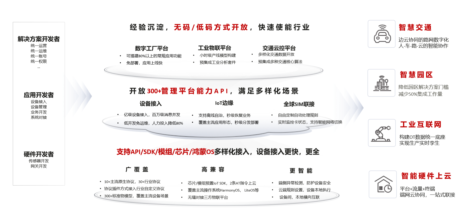 华为云IoT,面向各类型开发者,提供多样化的能力开放,提升各行业数字化方案构建效率