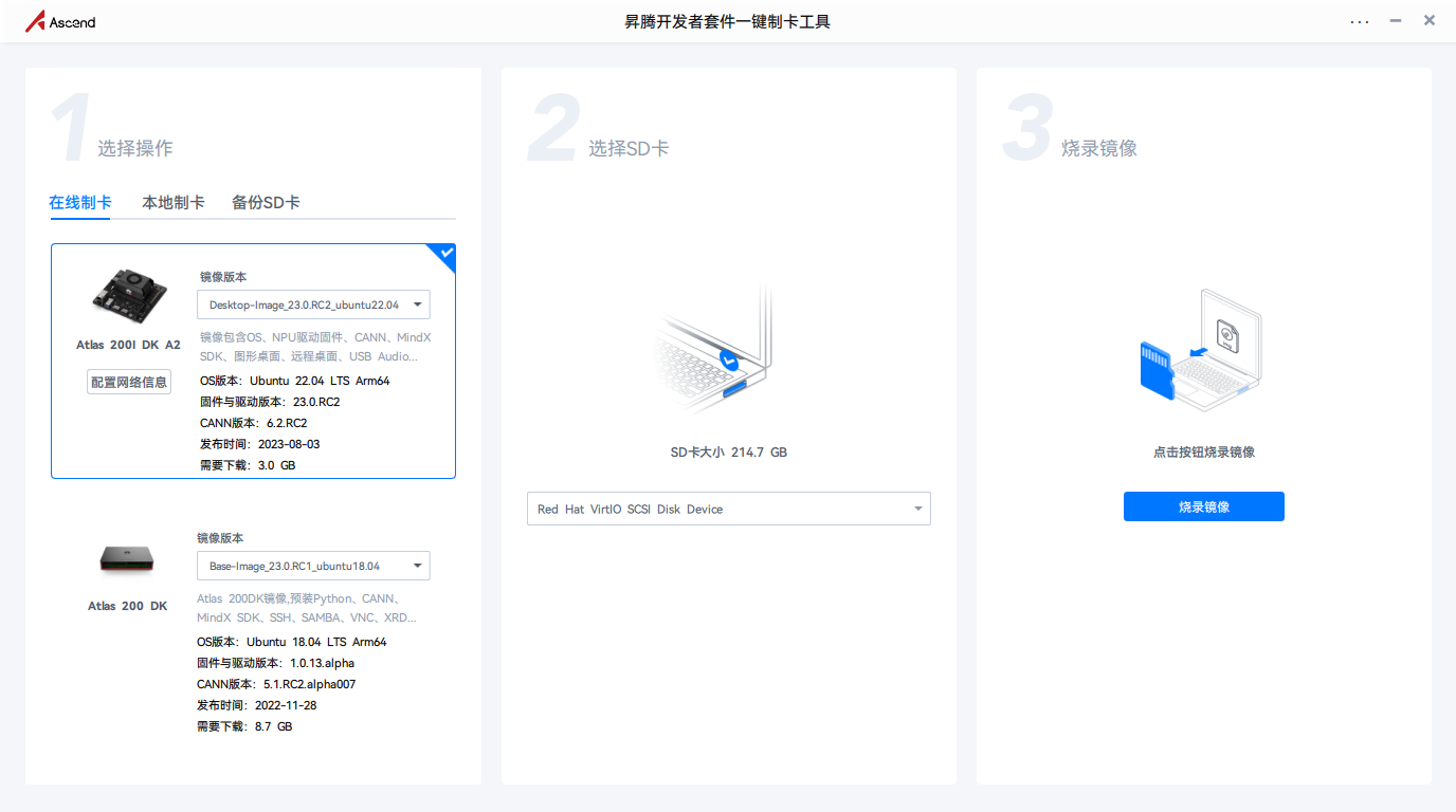 -> 选择SD卡(烧录镜像时会自动将SD卡格式化,需要提前检查SD卡是否有数据需要提前备份)