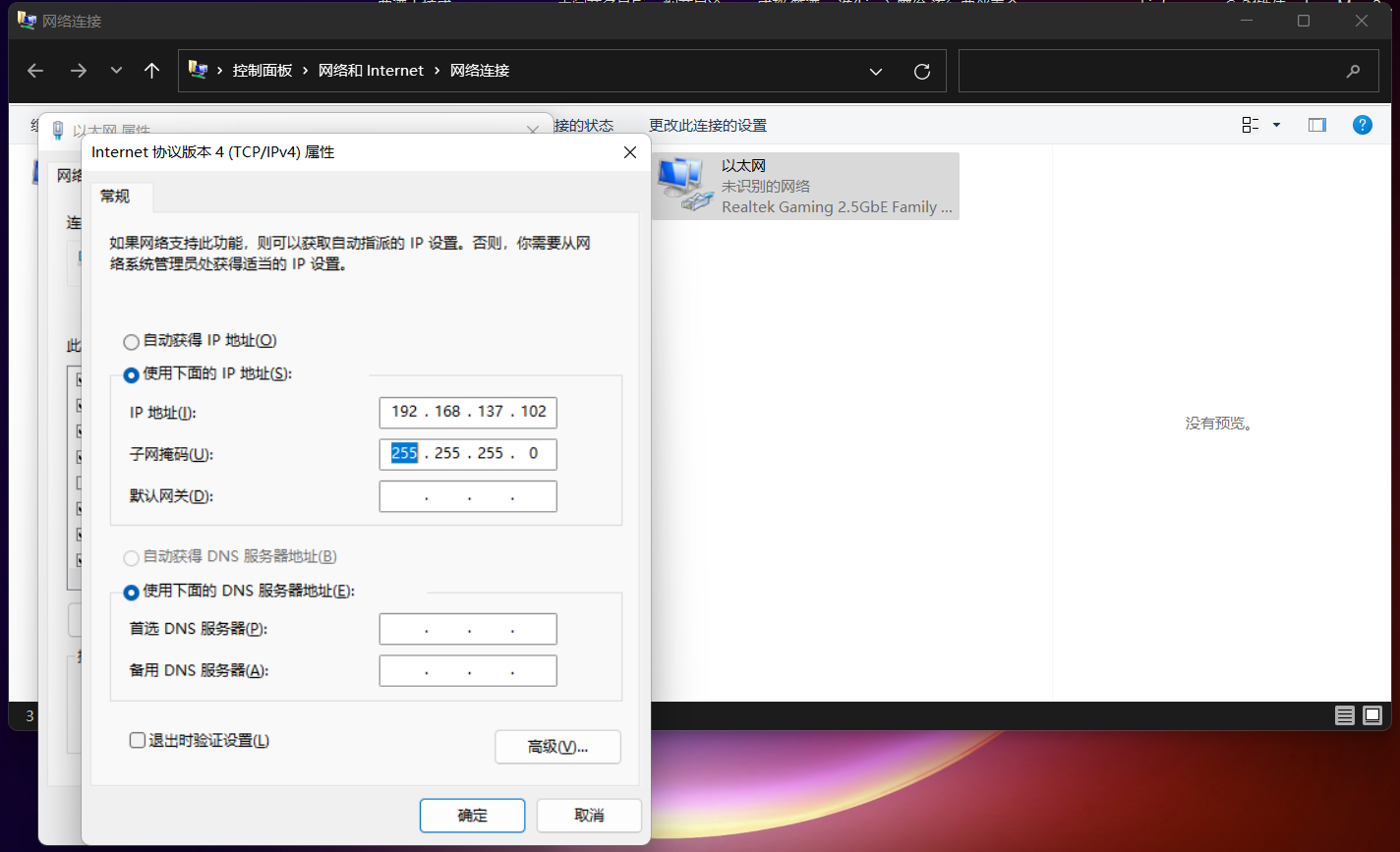 进入“网络”界面 -> 双击“Internet 协议版本 4(TCP/IPv4)” -> 修改IP地址与子网掩码