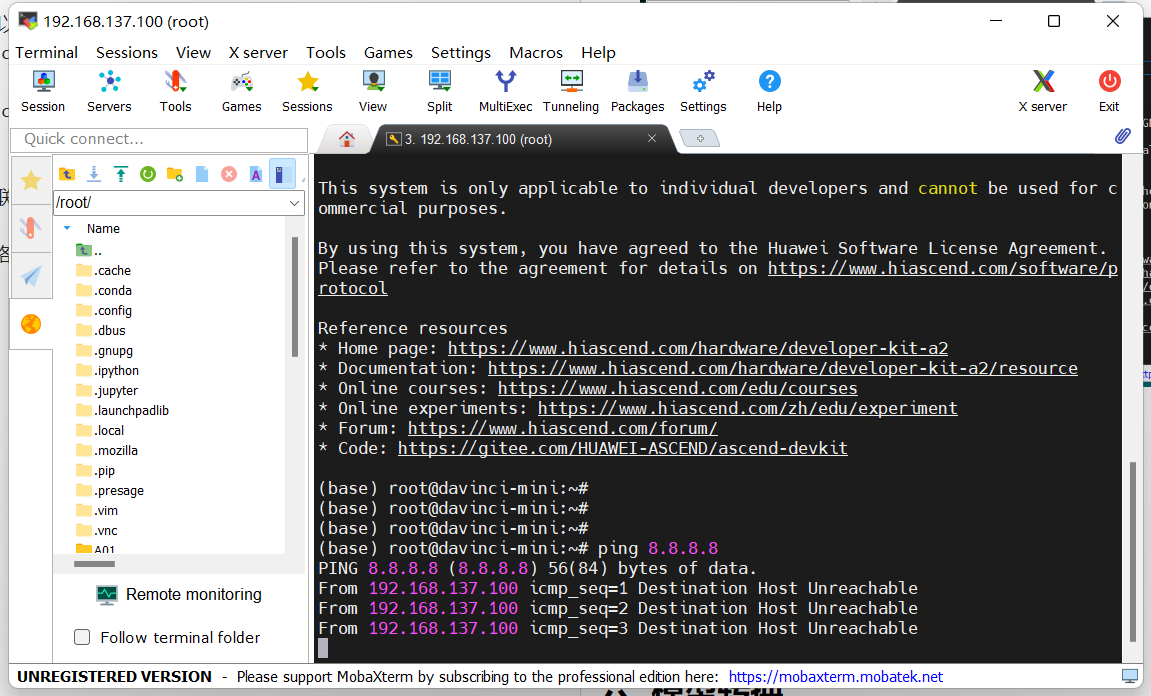 (若正确配置网络后仍无法联网,请参考昇腾官网文档-正确配置网络后仍无法联网)