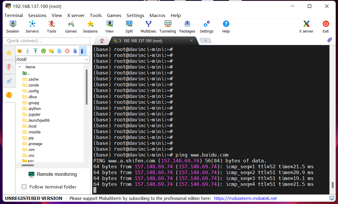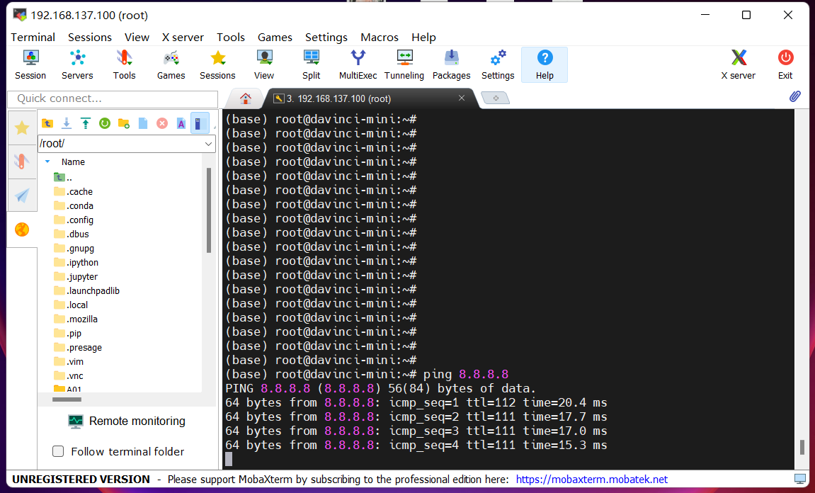 (可以通过拖拽文件的方法上传到MobaXterm) -