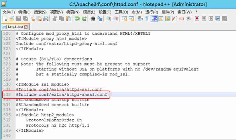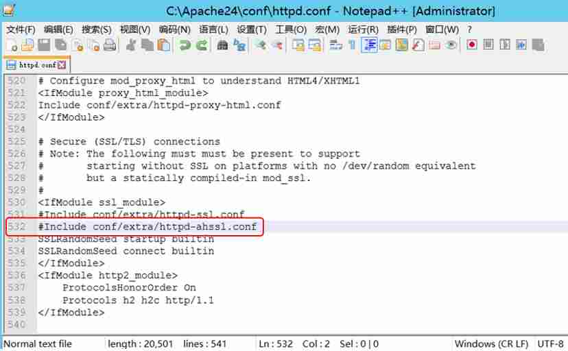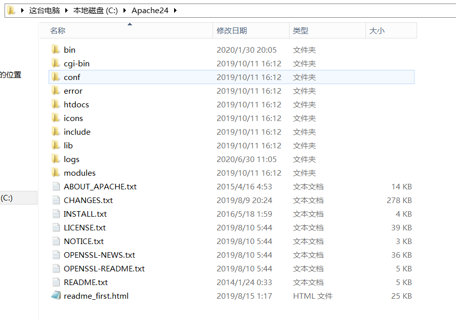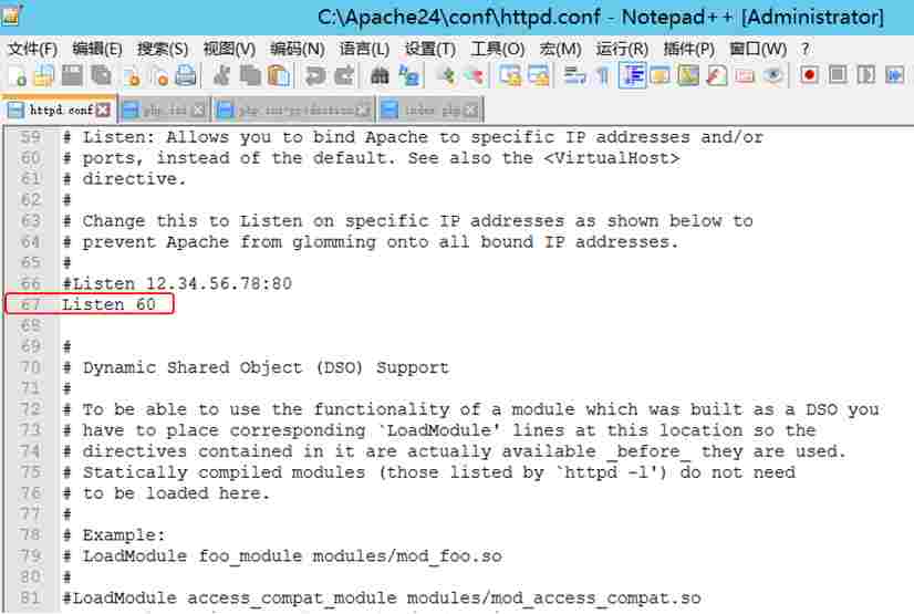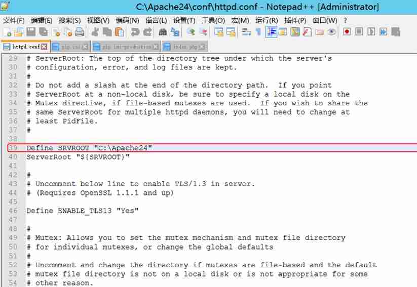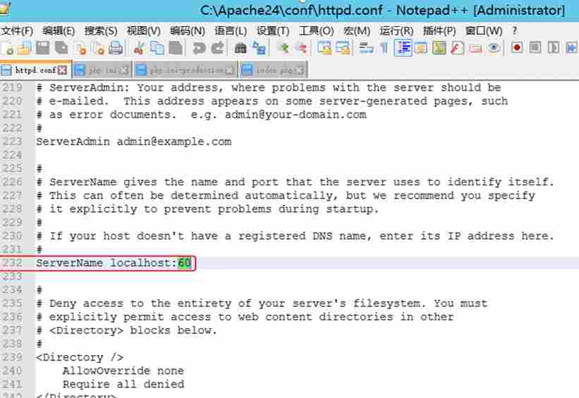 打开 Apache24\conf 目录下的 httpd.conf,修改配置信息