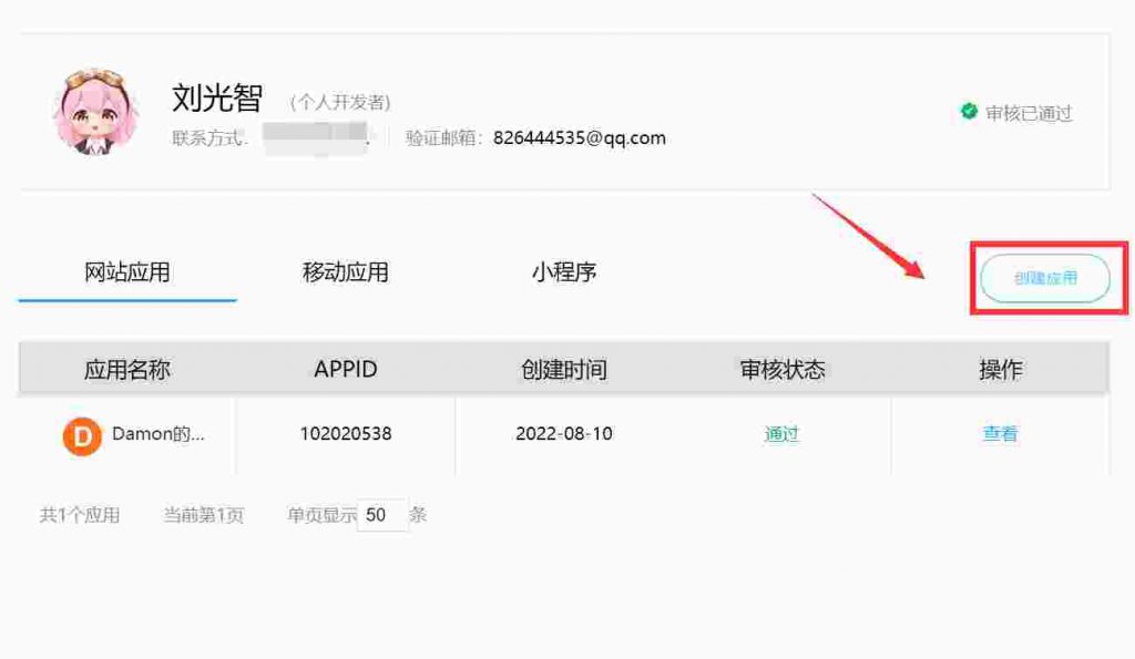 2、QQ互联申请APPID和APPSECRET