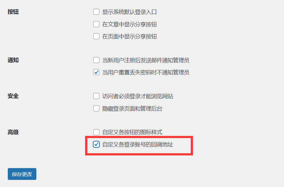 首先,常规页里勾选自定义各登录账号的回调地址。