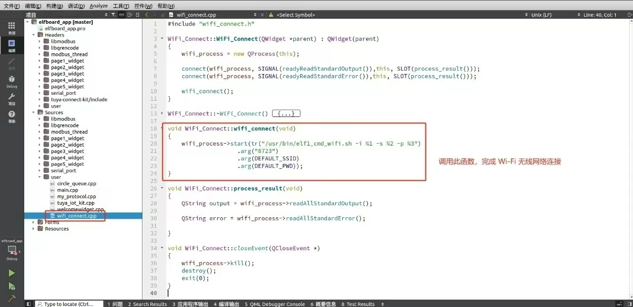 十分方便的是,ElfBoard官方已经提供了一个联网脚本,elf1_cmd_wifi.sh,应用程序开发工程师可以很方便地调用这个脚本进行互联网链接,对于使用嵌入式Linux+Qt开发的应用程序,ElfBoard官方也提供了参考例程,程序开发的时候直接参考使用即可。