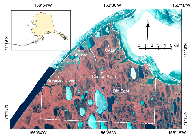 空间覆盖范围: 在美国阿拉斯加州巴罗周围的四个地点收集数据。