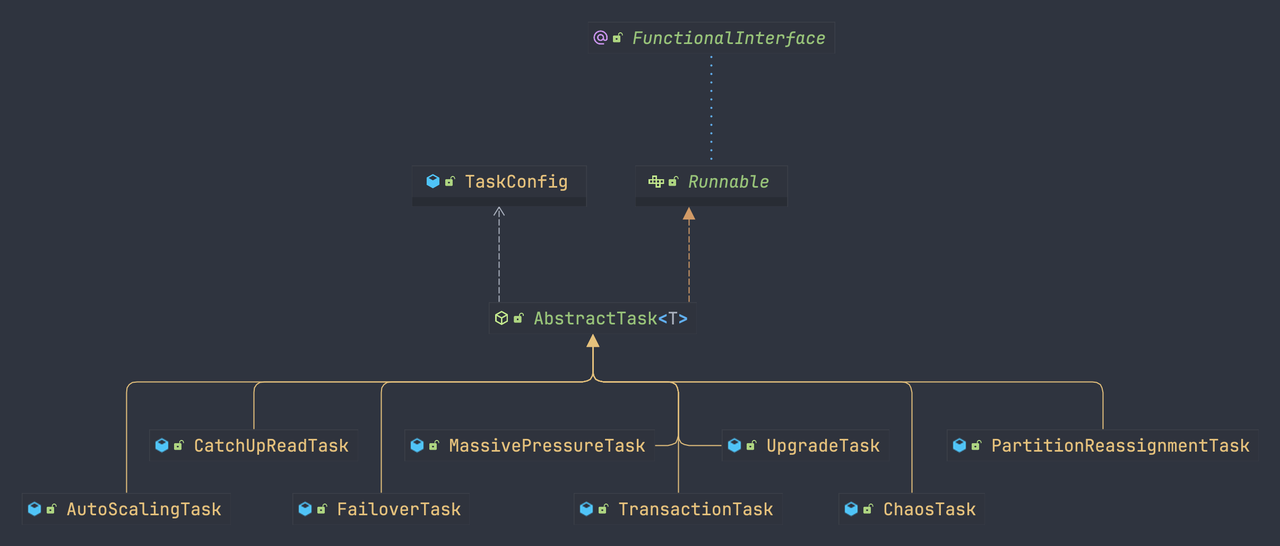 有了 AbstractTask 的诸多实现类,就具备了多种测试场景。为了让 Controller 能够运行以上场景,还需要编排不同的任务阶段乃至于不同的任务。