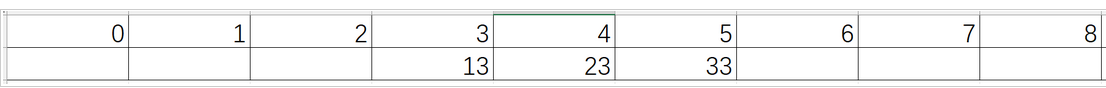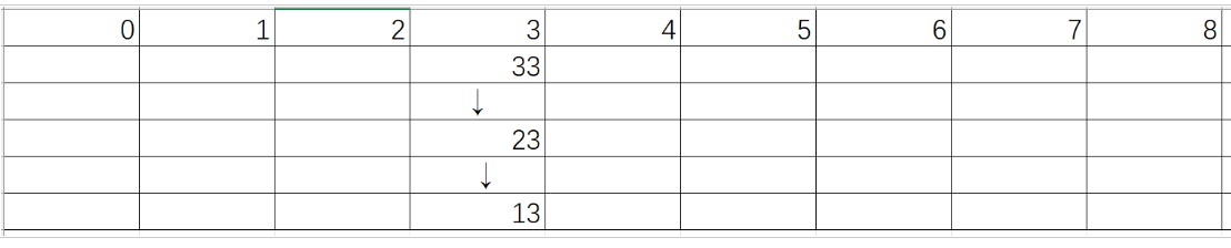 当插入的数据为33时计算的位置为3,可是位置3已经被占领了并且4也被占领了,但是位置5没有被占领所以插入数据33就会占领位置5,那么这里的图片就如下: