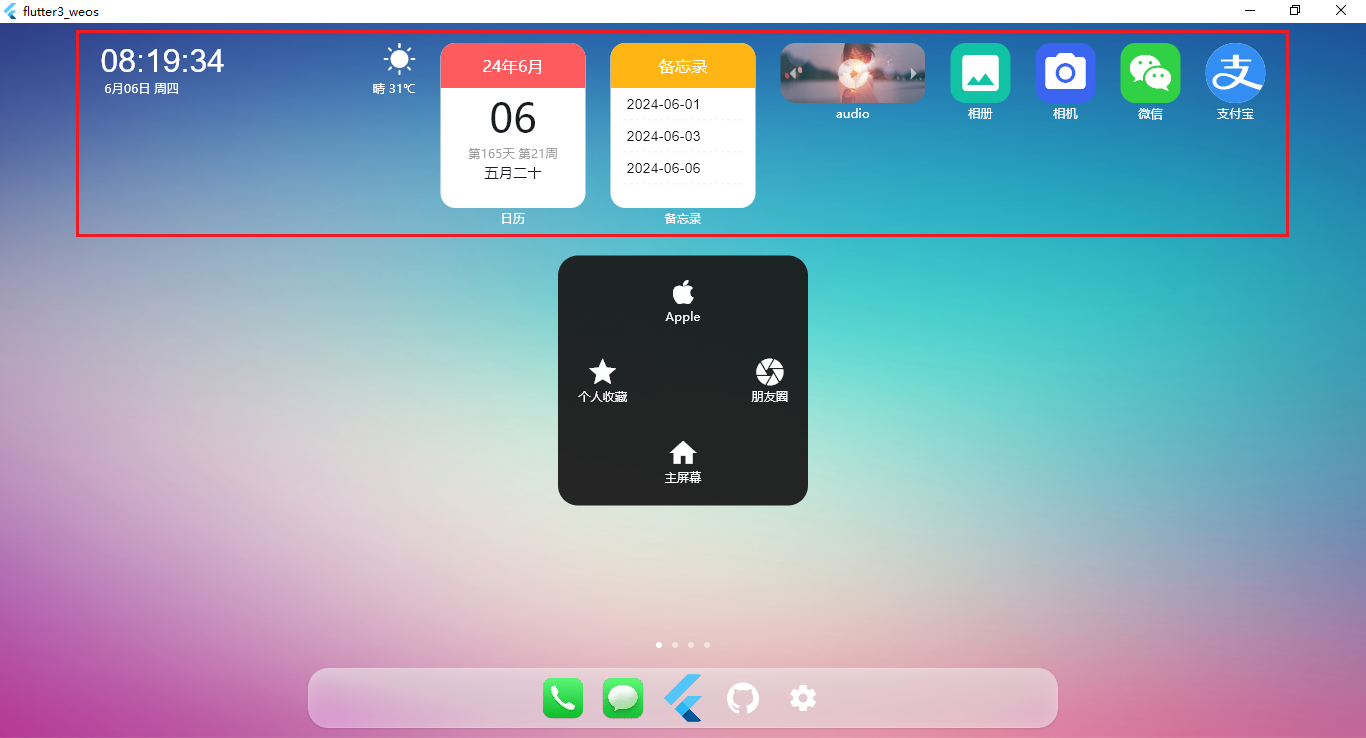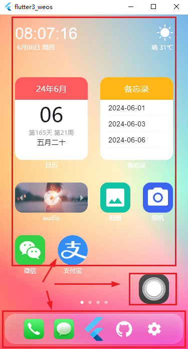 【摘要】 flutter3-weos手机OS系统|Flutter3.22+Getx仿ios桌面管理OA应用。全新自研flutter磁贴式栅格布局引擎、分屏式多页管理、自定义主题壁纸、卡片式桌面小部件、可拖拽式悬浮球菜单等功能。