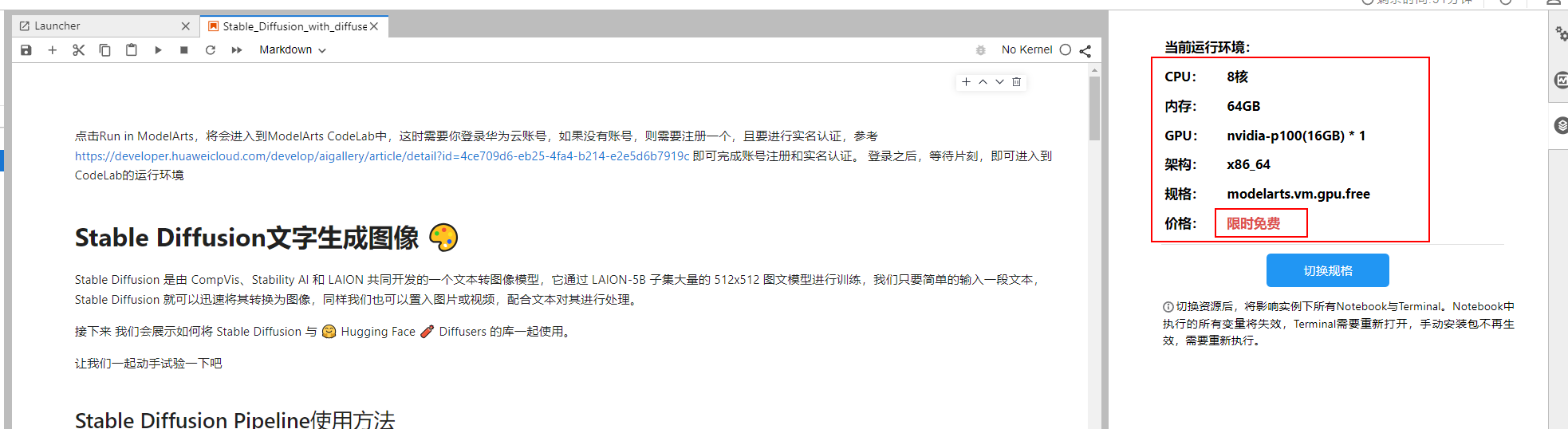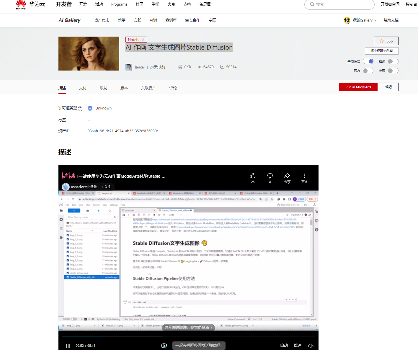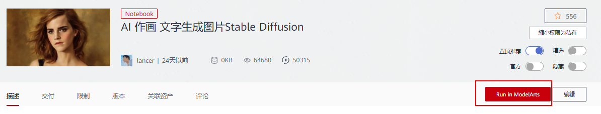 如果想要快速知道案例怎么运行也可以直接参考视频:【一键使用华为云AI作画ModelArts体验Stable Diffusion】
