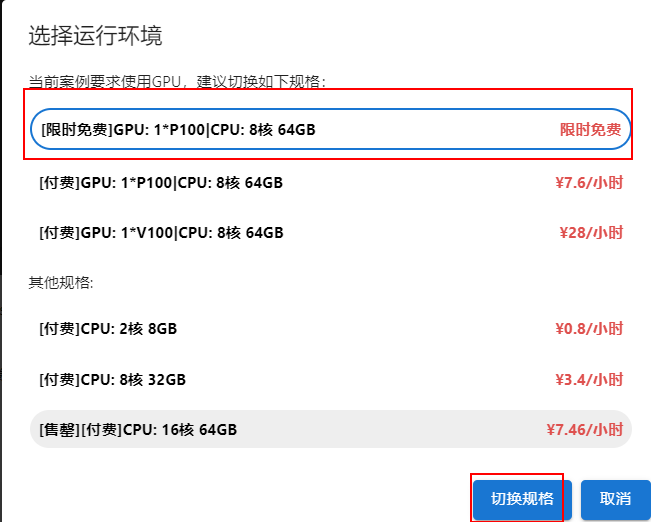 2)等倒计时为0,选择下面的GPU规格-切换规格。