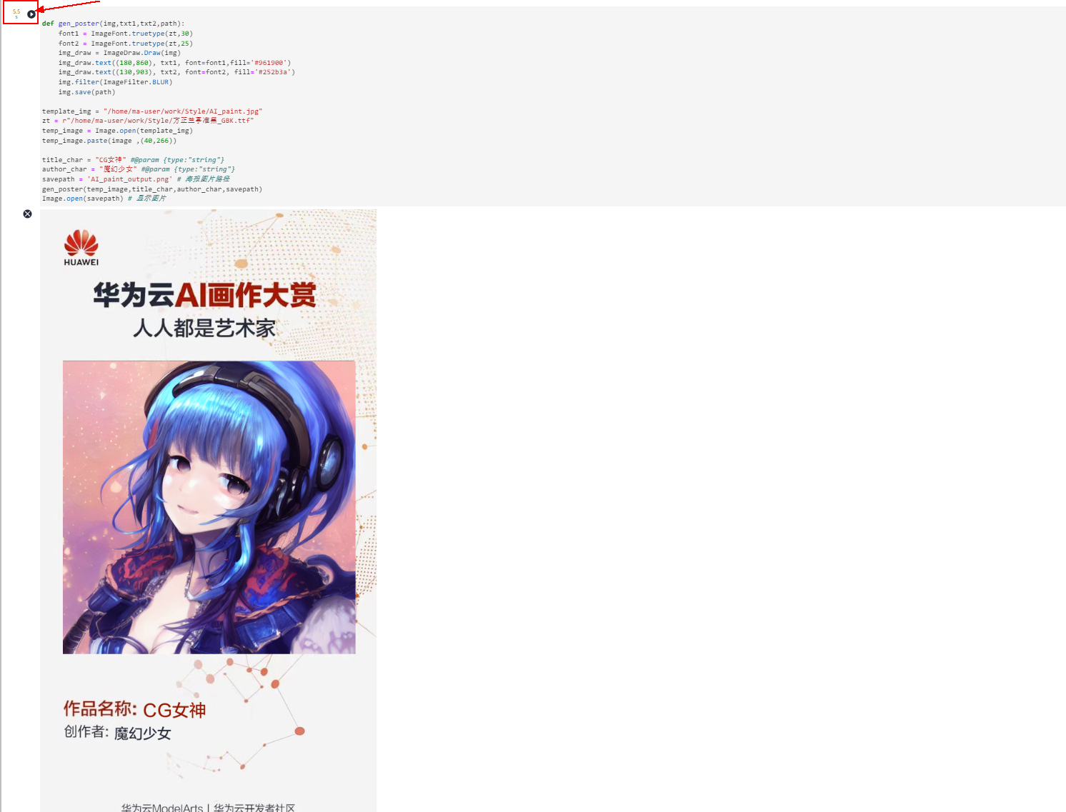 点击运行代码生成海报: