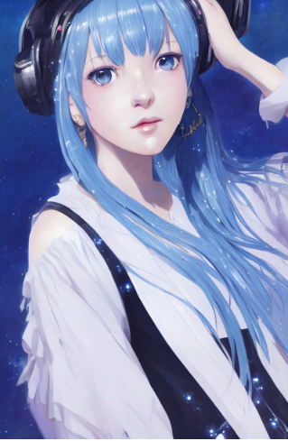 prompt::“Cygames girl character concept art and illustration by akihiko yoshida , ultimate dressy , amazing detailed face in profile closeup, galaxy in blue hair, Jewelry eyes , wearing a white galaxy dress , Line Array Speaker , Extreme Explosion , Subwoofer , kyoani character face , cute ,pretty girl , dynamic pose, portrait , pixiv daily ranking , pixiv , artstation ,specatcualr details, Volumetric Lighting , Dramatic lighting —ar 9:16 --test --creative --upbeta”
