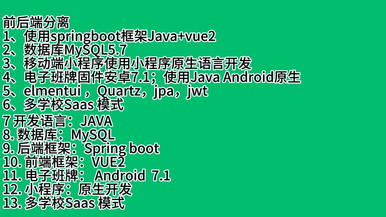 智慧校园全套源码包含:电子班牌管理系统、成绩管理系统、考勤人脸刷卡管理系统、综合素养评价系统、请假管理系统、电子班牌发布系统、校务管理系统、小程序移动端、教师后台管理系统、SaaS运营云平台(支撑多学校、多校园使用)。