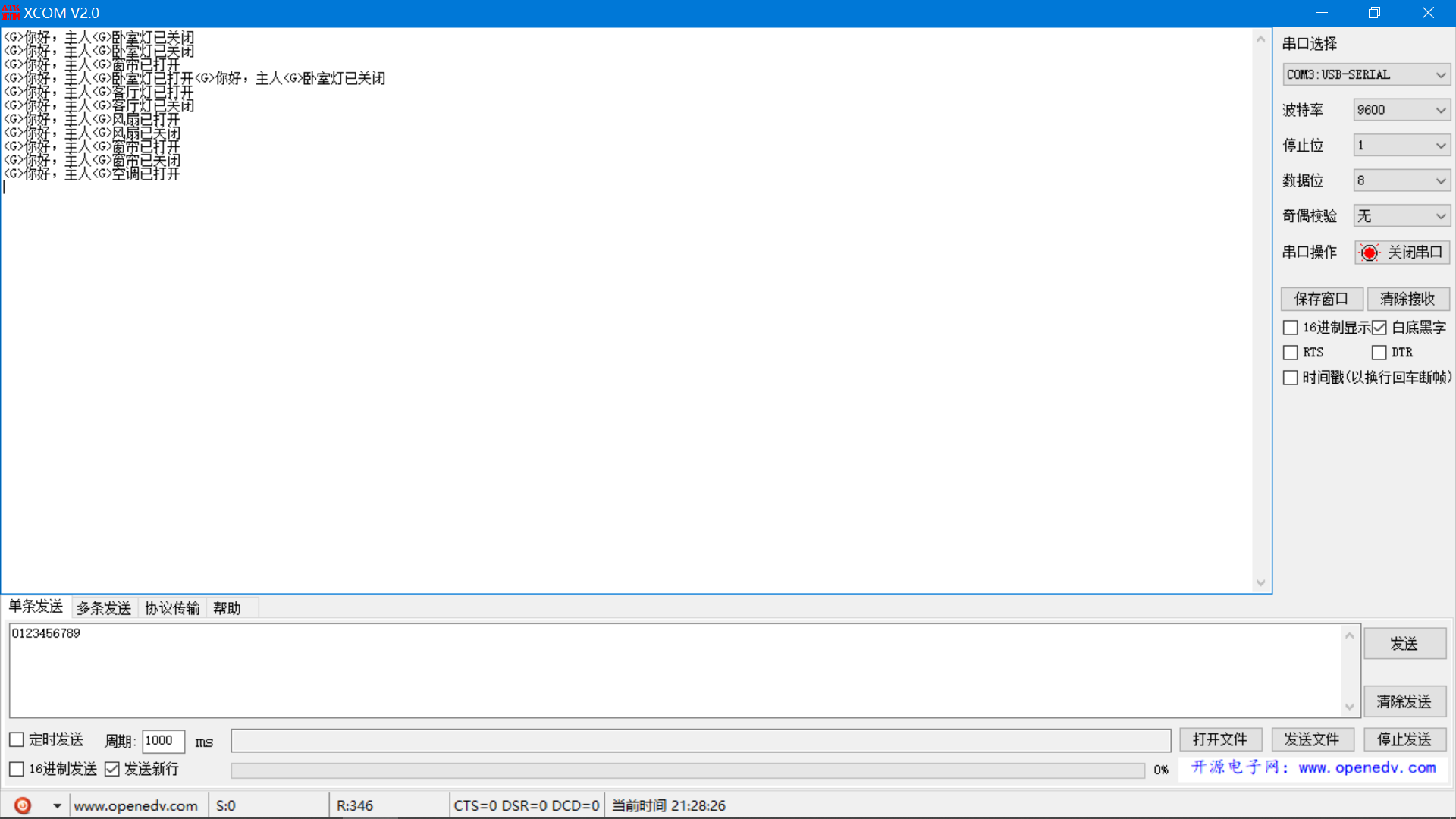 - 雨滴感应与响应:通过雨滴传感器检测下雨情况,当下雨时系统会自动关闭窗户,并播放语音提示“下雨了,记得收衣服哦”。