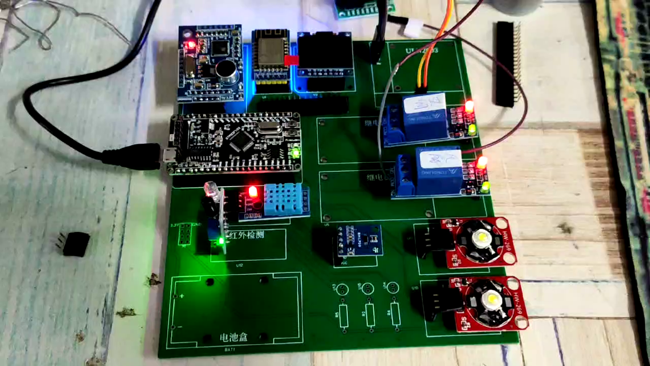 - 系统配备本地LCD显示屏,实时显示当前检测到的烟雾、雨滴、光敏、温湿度等环境参数的具体数值。