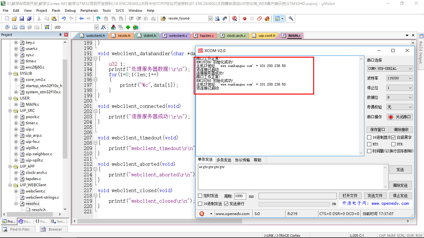 1.9 ENC28J60移植UIP协议并编写客户端测试示例