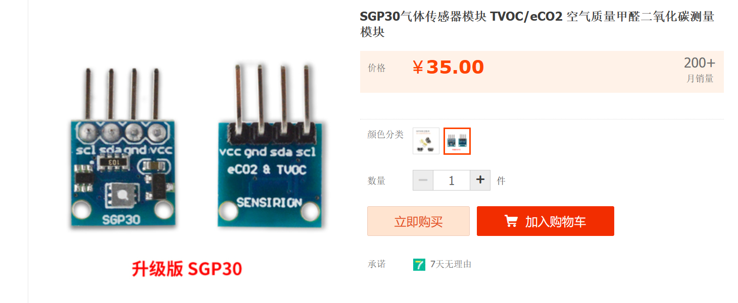 - SGP30气体传感器模块:用于检测车内空气中的有害气体浓度,包括TVOC(总挥发性有机化合物)、CO2、甲醛等。