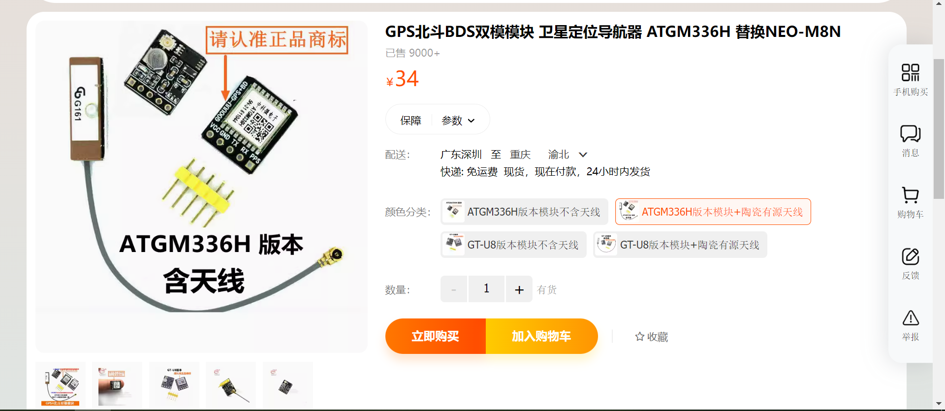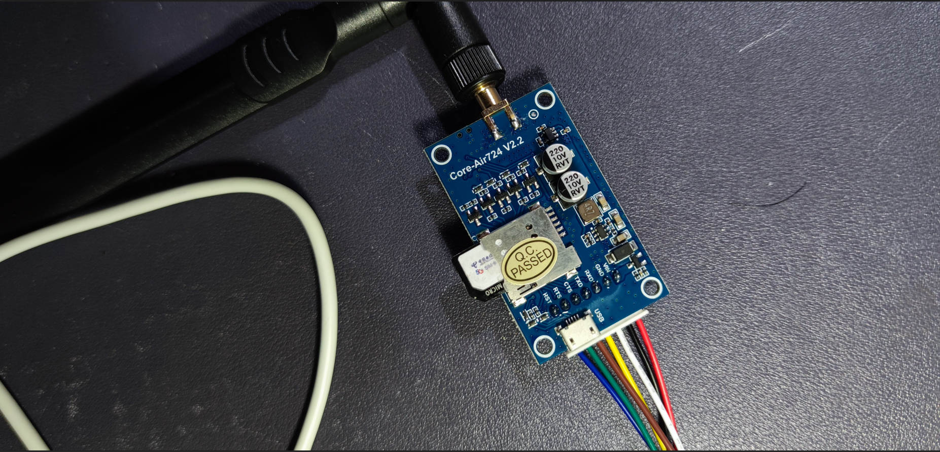 (1)拿到模块,先接好天线,再插好卡(卡的缺口朝外): 模块是全网通模块,只支持4G网络,支持 移动、联通、电信卡。