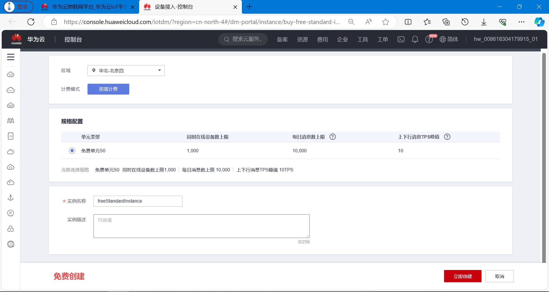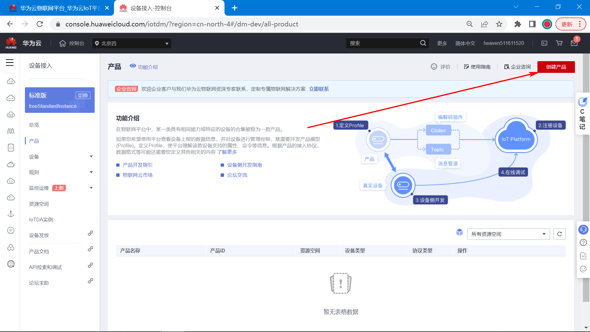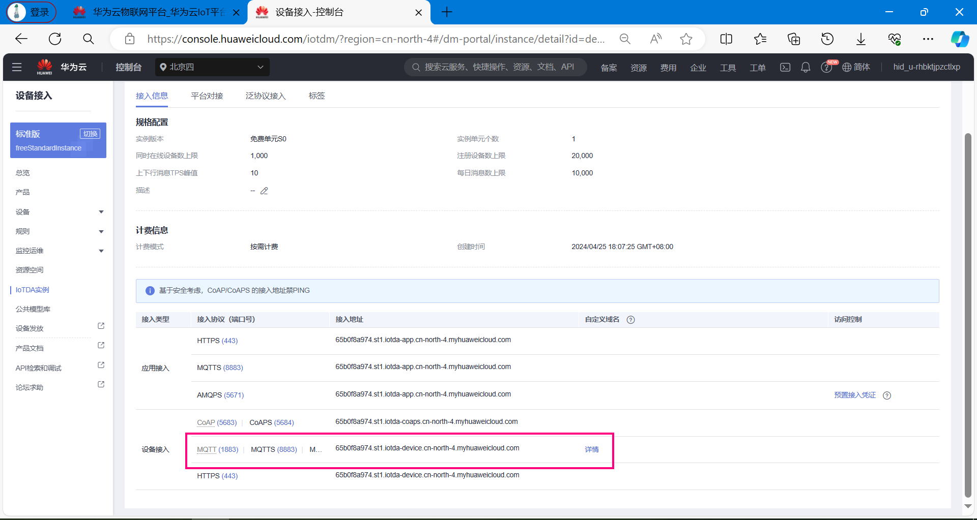 接下来介绍,华为云平台的MQTT三元组参数如何得到。